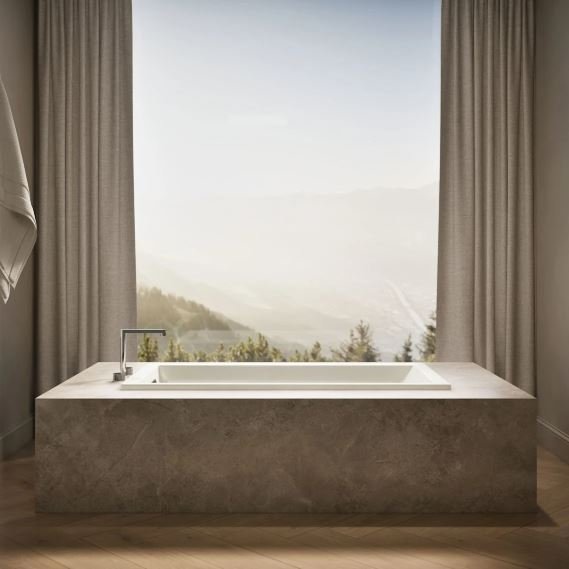 Description: Simple, crisp design, this Underscore bath exudes understated style with contemporary flair. A slotted overflow drain allows for a luxuriously deep bath as you relax against the comfortable sloped backrest.